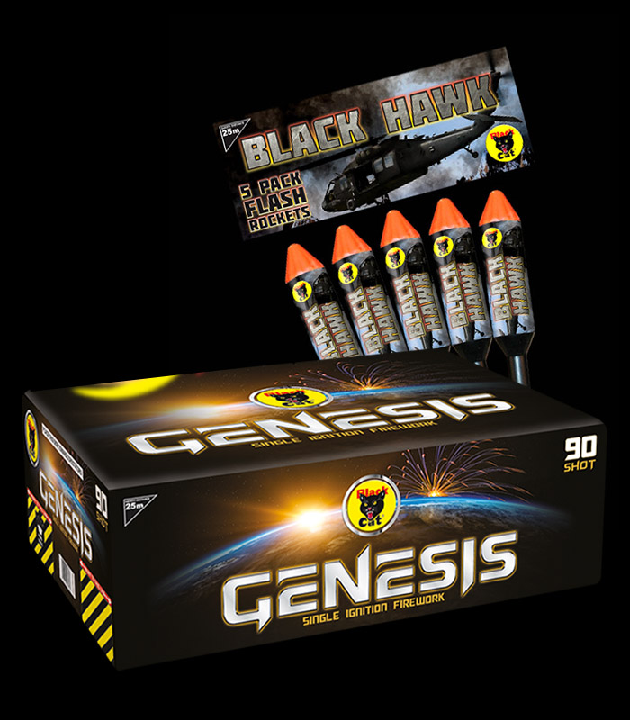 Black Hawk is a pack of five large 1.3g rockets, with each rocket producing a different effect